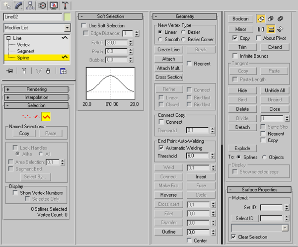 Рис. 3.77. Режим редактирования Spline (Сплайн) объекта Line (Линия)