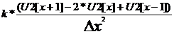Выразив U3[x], мы можем в цикле (for x:=0 to n-1 do) посчитать все значения отклонения для каждой точки х на третьем слое, за исключением правой граничной точки на этом же слое. 4.Для нахождения значения в правой граничной точке мы используем правой граничное условие, например Затем вывод U3 и переприсваивание массивов:U1:=U2, U2:=U3; Закрываем цикл по времени. Программа на Pascal аналогична первой (для уравнения теплопроводности), составить самостоятельно.