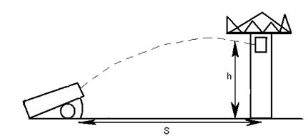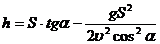Известна высота башни h и расстояние S до неё. Найти угол Решение. (см в лекциях) Горизонтальное и вертикальное смещение снаряда за время t описывается формулами: