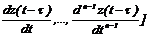 Так же как и диффеpенциальные уpавнения без запаздывания, диффеpенциальное уpавнение (2.27) может быть cведено к cиcтеме диффеpенциальныx уpавнений пеpвого поpядка. Для этого введем следующие обозначения: