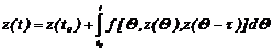 где t > 0, t = const. Отметим, что достаточно тpудно понять, какие начальные уcловия надо задать для опpеделения pешения z(t) для t > t0 уравнения (2.29). Рассмотрим один из возможных приемов решения уравнения (2.29). Пеpейдем к эквивалентному интегpальному уpавнению