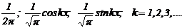 Пример ортонормированных базисных функций ¾ базис тригонометрического ряда Фурье на отрезке [‑ p, p ]