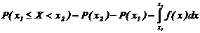 Функцию распределения F(x) называют также интегральной функцией распределения вероятностей, так как она определяет вероятность того, что случайная величина X меньше значения x. В теории вероятностей известны разные виды функций распределения вероятностей, которые обладают общими свойствами: функция распределения F(x) ¾ неубывающая функция своего аргумента, т.е. при x2 > x1 F (x2)³ F (x1); F (-¥)=0; F (+¥)=1. Вероятность попадания случайной величины на заданный участок (x1, x2) определится по формуле