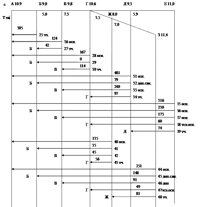 Рассмотрим угловые вагонопотоки на направлении Е-Г-З рис. (4.8)
