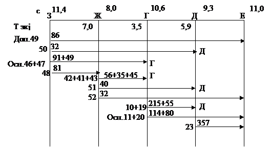 Рисунок 4.7 - Оптимальный вариант угловых вагонопотоков на направлении З-Г-Е