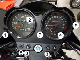 Датчик уровня топлива (Рис. 9, поз.7) показывает уровень топлива Контрольная лампа нейтральной передачи (Рис. 9, поз. 8) указывает о включении нейтральной передачи