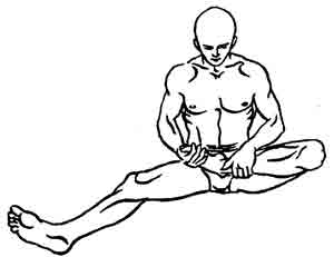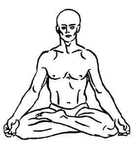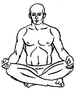 Маха-бандха-мудра может выполняться в двух асанах — Сиддхасане (которую мастера часто именуют Ваджрасаной) — позе совершенства и Ардха-падмасане — полулотосе. Существует три основных варианта Сиддхасаны. Первый — самый простой — иногда описывают также как один из вариантов Свастикасаны — «благодатной позы». Чтобы принять эту асану, нужно сесть прямо с вытянутым вверх позвоночником и, согнув ноги, поместить пальцы правой ноги в коленную впадину левой (рис.2-17.1).