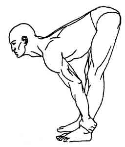 Падахастасана —растягивание всего тела с касанием ступней кистями рук