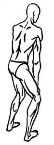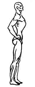 рис.2-38.1 рис.2-38.2 Подняться и, с усилием «довыдохнув» остаточный воздух и не отпуская Мула-бандху, втянуть живот от лобка до грудины за счет подтягивания диафрагмы вверх. На месте живота должна образоваться впадина. В идеале сквозь переднюю стенку живота будет прощупываться позвоночник (рис. 2-38.2). Мышцы передней стенки живота должны быть полностью расслаблены, иначе ничего не получится. Исключение составляет лишь самая-самая нижняя часть паховой мускулатуры, участвующая в удержании Мула-бандхи. Оставаться со втянутым животом как можно дольше, сохраняя задержку дыхания на выдохе. Потом расслабиться и вдохнуть. Повторить втягивание живота нужное количество раз.Выполнять Уддияна-бандху можно также и в одной из сидячих медитативных а сан.