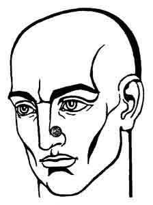 Перекрыть большим пальцем поток воздуха через правую ноздрю (женщинам — через левую), слегка нажав им на нос в точке у основания ноздри — там, где для перекрытия потока требуется наименьшее усилие (рис.2-47.2).