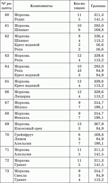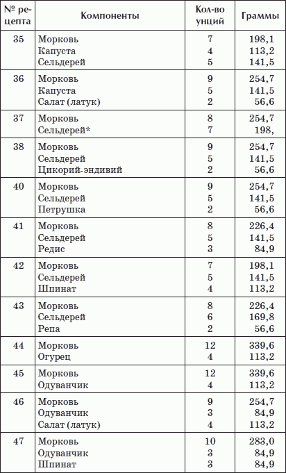 * Потребляя листья сельдерея, измените пропорцию: 10 унций моркови, 6 унций сельдерея.