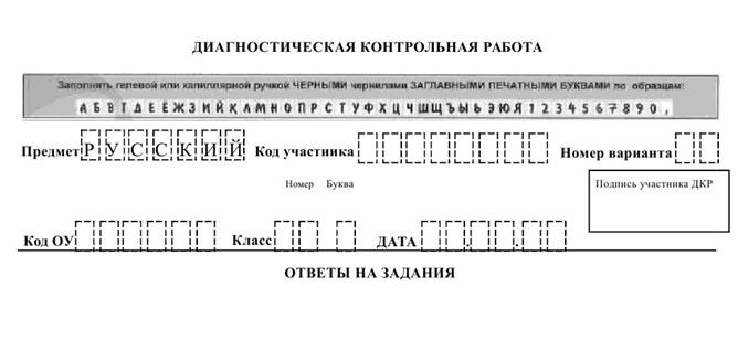На выполнение контрольной работы дается 40 минут. Работа в 5 классе состоит из 14 заданий, в 6 – из 15 и в 7 – из 16 заданий. Контрольная работа состоит из заданий или с выбором ответа, или заданий с кратким ответом. Советуем выполнять задания в том порядке, в каком они даны. Для экономии времени пропускается задание, которое не удается выполнить сразу, и ученик переходит к следующему. Если после выполнения всей работы у школьника останется время, он может вернуться к пропущенным заданиям. К каждому заданию с вариантом ответа для выбора предлагаются 4 варианта ответа, из которых только один верный. Задания с кратким ответом представляют собой вопрос без варианта ответа, ученик должны сформулировать его самостоятельно и записать в краткой форме. Все ответы фиксируются в специальном бланке справа от номера задания. Каждую букву и цифру необходимо писать в отдельной клеточке, начиная с первой, без пробелов и запятых. За каждое правильно выполненное задание ученик получает 1 балл. Максимальное количество баллов, которое должен набрать ученик при выполнении ДКР по русскому языку – 14 (5кл.), 15 (6 кл.), 16 (7 кл.)