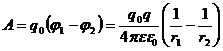 следовательно, работа поля по перемещению заряда q0 между точками 1 и 2, находящимися на расстояниях r 1 и r 2 от точечного заряда q, может быть вычислена по формуле