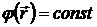 Знак потенциала φi, совпадает со знаком заряда. Для графического изображения полей, кроме силовых линий электрического поля, удобно использовать эквипотенциальные поверхности (линии) — поверхности (линии) равного потенциала:
