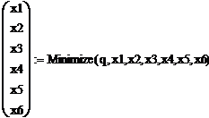 3.2 Ограничения на привоз: в каждый пункт потребления нельзя привозить меньше, чем там потребляют. В 1: х 1+ х 4 ≥ 30; В 2: х 2+ х 5 ≥ 30; В 3: х 3+ х 6 ≥ 25. Замечание. Типичная ошибка: при составлении модели коэффициенты целевой функции матрицы (тариф на перевозку 10, 5 и т. д.) заносят в ограничения. Следует помнить, в ограничениях на ввоз вывоз коэффициенты могут быть равны только 1 или 0, а тарифные коэффициенты встречаются только в целевой функции. 4. Решение с помощью MathCAD.