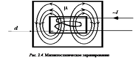С увеличением частоты магнитного поля распределение вихревых токов по сечению материала экрана становится все более неравномерным, т.е. проявляется поверхностный эффект, при котором происходит сосредоточение вихревых токов в поверхностных слоях экрана и ослабление переменного магнитного поля при проникновении его в толщину экрана. Чем выше частота магнитного поля, тем меньше глубина проникновения. Следовательно, экранирование магнитного поля обусловлено, во-первых, компенсацией этого поля магнитным полем вихревых токов, и, во-вторых, ослаблением магнитного поля при проникновении в толщину стенок экрана. До тех пор пока толщина стенок экрана меньше глубины проникновения, решающим может оказаться ослабление поля при проникновении его в толщину стенок экрана. Так как с ростом частоты магнитного поля глубина проникновения уменьшается, то уменьшается и магнитопроводность экрана, которая зависит от габаритов и магнитной проницаемости материала экрана. В этих условиях из-за существенного уменьшения эквивалентной толщины стенок экрана явление шунтирования магнитного поля не проявляется. Поэтому для обеспечения экранирования на высоких частотах в качестве материала экранов часто применяются немагнитные материалы. Эффективность магнитостатического экранирования тем больше, чем больше магнитная проницаемость вещества Для получения высокого коэффициента экранирования стенки экрана приходится делать сравнительно толстыми или применять составной экран из нескольких слоев материалов с большой магнитной проницаемостью ( Экранирующие материалы и конструкции экранов. Для экранирования электрических полей используют материалы с высокой электропроводностью. Эффективность такого экрана, как видно из выше приведенных формул, бесконечно велика на очень низких частотах и падает с их ростом. Экранировать магнитные поля более сложно, поскольку затухание из-за отражения равно нулю для некоторых сочетаний материалов и частот. С уменьшение частоты ослабление магнитного поля из-за отражения и поглощения в немагнитных материалах (например, в алюминии) падает, поэтому трудно создать магнитный экран из немагнитных материалов. На высоких частотах, где экранирование обеспечивается и поглощением и отражением, выбор материала менее критичен. Магнитные материалы обеспечивают лучшее экранирование от плоских волн за счет поглощения, в то время как электропроводящие материалы – за счет отражения. Принято считать, что большинство жестких механических материалов обладают хорошими экранирующими свойствами. На звуковых частотах эта закономерность не соблюдается, и для магнитного экранирования следует применять материалы с высокой магнитной проницаемостью. На низких частотах стальной экран, магнитная проницаемость которого может быть достаточно высока (или экран из другого электропроводящего материала со значительной магнитной проницаемостью), оказывается эффективнее медного по поглощению. Однако для повышения его эффективности приходится увеличивать толщину экранирующего листа. Кроме того, с ростом частоты магнитная проницаемость всех материалов быстро уменьшается, причем тем значительнее, чем больше ее начальное значение. Поэтому материалы с большой магнитной проницаемостью (104 Гн/м) целесообразно использовать 
