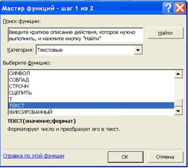 Следуем по шагам Мастера функций, читая комментарии к к заполнению каждого окна аргументов функции. Получаем: