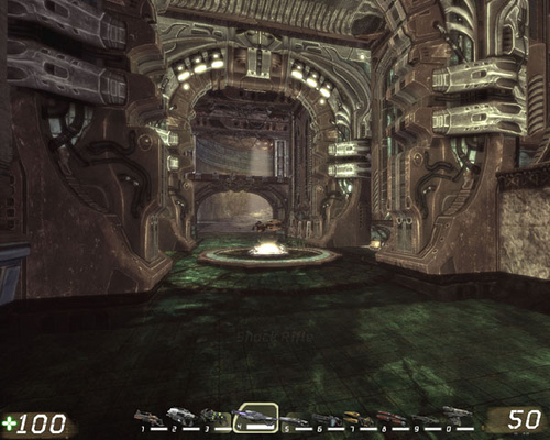 Четыре главных респауна: на Rocket`e, на Snipe`e, на Flak`е и на Link`е. Респ игрока легко контролировать, если мы поднимемся на место дислокации трех аптек, то сможем увидеть, как появляется игрок на Link`e или на Snipе/Bio. Если мы не видим никого и не слышим звуки шагов по воде, означающих, что противник появился на Flak`е, то можем смело спамить выходы с места появления на Rocket Launcher`е. С большим количеством игр приходит чувство соперника, где он респаунился, но если у вас такого чувства нет, можете пытаться высчитывать место респауна исходя из алгоритмов появления соперника в UT3, описанных в предыдущей статье. Вкратце алгоритм заключается в том, что противник появляется в противоположном месте карты от места, где он погиб. Бывают такие ситуации, когда вы убили соперника ровно посередине карты и не можете точно рассчитать в какой части локации появится ваш соперник, поэтому нужно бежать в ту точку, которая наиболее выгодна для этой карты, к примеру, к шоке, чтобы не дать её сопернику.