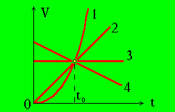 На рисунке представлены графики зависимости модуля скорости от времени для четырех тел. Какое из этих тел (или какие тела) прошли наибольший путь? Решение. На рисунке показаны графики зависимости скорости движущихся тел от времени. Как известно, пройденный телом путь представляет собой площадь, лежащую под графиком скорости. Из рисунка видно, что фигура максимальной площади лежит под графиком, для тела 4. Значит, за промежуток времени от 0 до t0 тело 4 прошло наибольший путь.