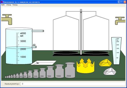 Итак, вам даны: слиток драгоценного металла золотистого цвета, слиток дешевого металла по цвету похожего на серебро и корона. Определите плотности этих тел и рассчитайте, сколько процентов (по массе) драгоценного металла содержится в короне. Полученные результаты занесите в отчет и отправьте на сервер. Массу округлять до единиц, плотность - до сотых, проценты - до десятых. Пример округления: 0,605 можно округлять до 0,60 или 0,61. Сначала необходимо найти массы короны и слитков путём взвешивания на весах. Затем – определить их объёмы. В результате можно найти плотность короны и каждого из слитков. После чего учащийся должен вывести формулу, показывающую как зависит плотность короны от количества и плотности составляющих её металлов. С использованием этой формулы можно вычислить процентное содержание драгоценного металла.