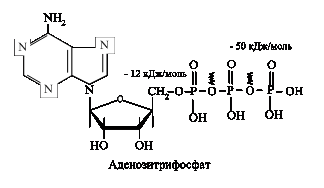 2.4. Основні високоенергетичні сполуки. Центральна роль АТФ в біоенергетиці У людини і тварин основними макроергічними сполуками є фосфор- і сірковмісні речовини. Одним із представників є АТФ:
