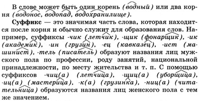 Примечание. Суффиксы могут служить для образования форм слов, например: знамя (им. п.) — знамени (р. п.), веселый — веселее (сравнит. степень), почитать (сов. вид) — почитывать (несов. вид).