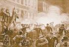 Бурная весна 1886 года Вдали от центра Чикаго, на большом перекрестке двух широких, хотя и не центральных улиц с недавних пор стоит современного вида памятник. Нечто вроде небольшой баррикады: повозка, загроможденная досками, люди на ней. Это место на картах города называется "Хэймаркет-сквер", то есть площадь Сенного рынка. Ранней весной 1886 года рабочие организации, в которых были сильны анархисты, развернули по всей стране борьбу за 8-часовой рабочий день. Анархисты, выступая на митингах, призывали рабочих вооружаться и переходить от мирных экономических требований к радикальным политическим - уничтожению капиталистической системы и господства одного класса над другим. Средоточием борьбы стал промышленный город Чикаго. В понедельник 25 апреля Центральный союз труда созвал в центре города огромный митинг. К 25 тысячам рабочих с пламенными речами обратились видные анархисты. Над толпой реяли лозунги на английском и немецком языках (среди чикагских рабочих было много иммигрантов из Германии, не спешивших освоить английский): "С первого мая - рабочий день 8 часов!", "Частный капитал - это наш украденный труд", "Рабочие, вооружайтесь!", "Долой трон, алтарь и денежные мешки!". Многим казалось: наступил последний кризис капитализма, и в Чикаго вот-вот возникнет коммуна по примеру Парижской. Напряжение нарастало, о том свидетельствует и прокламация тех дней: "Рабочие, к оружию! Война дворцам, мир хижинам, смерть роскошествующим бездельникам! Богатые классы должны либо трудиться, либо умереть. Один фунт динамита лучше, чем бушель избирательных бюллетеней! Требуйте сокращения рабочего дня с оружием в руках, чтобы достойно встретить кровавых псов капитализма - полицию и ополчение". Среди рабочих распространялась брошюра с подробными указаниями, как изготовить динамит и как закладывать его в бомбы. Автор брошюры, анархист (он действовал под чужим именем,) проработал некоторое время на фабрике динамита и хорошо знал весь процесс. Заметим, кстати, что подобные призывы и учебные пособия не противоречили американским законам о свободе слова и о праве на владение оружием. Не допускалось только переходить от слов к делу - на такой случай есть полиция. Стороны готовились к столкновению. Анархисты надеялись довести дело до вооруженного восстания. Власти намеревались раз и навсегда покончить с радикальным рабочим движением. У полиции и ополчения были подробные планы действий в зависимости от того, как повернется дело. В субботу, первого мая, 40 тысяч чикагских рабочих бросили свои рабочие места и вышли на улицу. К ним незамедлительно присоединились еще десятки тысяч. Толпы забастовщиков, переходя от завода к заводу, от фабрики к фабрике, призывали коллег бросить работу. По центральной улице прошли 80 тысяч рабочих. С крыш за ними следили полицейские и члены городского ополчения, вооруженные винчестера ми. Но день, вопреки опасениям, прошел без инцидентов, да и воскресенье выдалось сравнительно спокойным. Однако в понедельник, третьего мая, вспыхнула давно зревшая забастовка на заводе механических жаток Маккормика, который тут же уволил всех забастовавших и поставил к станкам штрейкбрехеров. Уволенные собрались у ворот завода и набросились на выходящих после работы штрейкбрехеров. Началась потасовка, из толпы полетели камни. Вмешалась полиция, пыт
