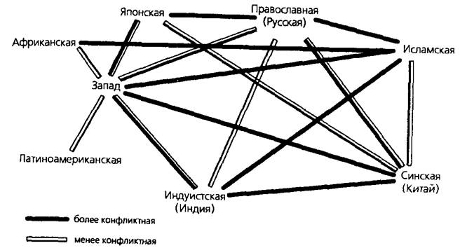 После «холодной войны» сложился многополюсный, полицивилизационный мир, в котором нет того всеохватного, господствующего во всех сферах раскола, что существовал в прежние годы. Однако до тех пор, пока продолжаются мусульманский демографический рост и азиатский экономический подъем, конфликты между Западом и цивилизациями-претендентами будут иметь в глобальной политике куда более важное значение, чем другие линии раскола. Весьма вероятно, правительства мусульманских стран и дальше будут все менее и менее дружественными Западу, а между исламскими группировками и западными государствами будут происходить стычки — временами, возможно, весьма ожесточенные. Отношения между США, с одной стороны, и Китаем, Японией и другими азиатскими странам будут носить весьма конфликтный характер, и попытка Соединенных Штатов Америки оспорить возвышение Китая как державы-гегемона в Азии может привести к крупномасштабной войне. В таких условиях взаимосвязь конфуцианского и исламского миров будет, вероятно, расширяться и углубляться. Центральным моментом их взаимодействия являлось сотрудничество мусульманских и синских стран, занимавших противоположные Западу позиции по вопросам распространения вооружений, прав человека и т. д. По своей сути весьма тесными являлись взаимоотношения между Пакистаном, Ираном и Китаем, которые выкристаллизовались в начале 1990-х годов после визитов президента Ян Шанькуня в Иран и Пакистан и президента Рафсанджани в Пакистан и Китай. Эти визиты «указали на возникновение зачаточного союза между Пакистаном, Ираном и Китаем». В Исламабаде, направляясь в Китай, Рафсанджани заявил, что между Ираном и Пакистаном существует «стратегический союз» и что нападение на Пакистан будет рассматриваться как нападение на Иран. Подтверждая этот курс, в октябре 1993 года, сразу после своего вступления в должность премьер-министра, Иран и Китай посетила с визитом Беназир Бхутто. Сотрудничество между тремя странами включало регулярные обмены государственными и военными делегациями, визиты политических деятелей и объединение усилий в гражданской и военной сферах, в том числе и в области оборонных технологий, не говоря уже о поставках Китаем оружия другим странам. Развитие этих взаимоотношений было решительно поддержано в Пакистане теми, кто склонялся во внешней политике к курсу «независимости» и «мусульманства», теми, кто ожидал возникновения «оси Тегеран—Исламабад—Пекин», в то время как в Тегеране были убеждены, что «особенный характер современного мира» требует «тесного и последовательного сотрудничества» между Ираном, Китаем, Пакистаном и Казахстаном. К середине 1990-х годов возникло нечто вроде союза де-факто, корни которого уходили в противостояние Западу, озабоченность отношениями с Индией и стремление противостоять турецкому и российскому влиянию в Средней Азии [43]. Какова вероятность того, что эти три страны станут ядром более широкой группировки, в которую будут вовлечены другие мусульманские и азиатские страны? Неформальный «конфуцианско-исламский альянс», как утверждал Грэм Фуллер, «мог бы обрести реальность не только потому, что учения Мухаммеда и Конфуция анти-западны по сути, но и потому, что эти культуры предлагают средство реализации недовольства, за которое отчасти несет ответственность Запад. 