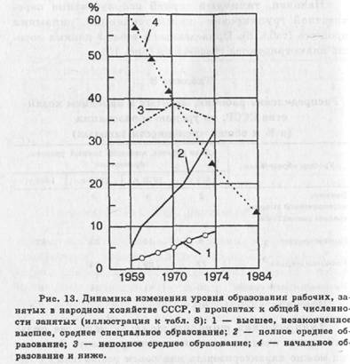 Наконец, типичный случай использования перекрестной группировки—поиск тенденции, динамики процесса (табл. 8). Приведенные в табл. 8 данные хорошо иллюстрируются графически (рис. 13).