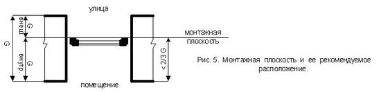 | Рекомендуется размещать плоскость окна на расстоянии не более 2/3 толщины стены от внутренней поверхности стены. Следует учитывать, что смещение окна в сторону улицы ухудшает теплоизоляционные характеристики, но улучшает звукоизоляцию, смещение в сторону помещения наоборот улучшает теплоизоляционные свойства, но ухудшает сопротивление шуму.