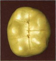 Учитывая вышесказанные анатомические особенности нижнего первого большого коренного зуба, а также закономерности построения на основе одонтомеров-модулей, приступаем к непосредственному моделированию коронки зуба. Рисунки отображают последовательное восстановление коронки нижнего правого первого моляра (работа на пластилине). Формируется заготовка, культя зуба (рис. 212, 213), где исполняется выбранный заранее масштаб.