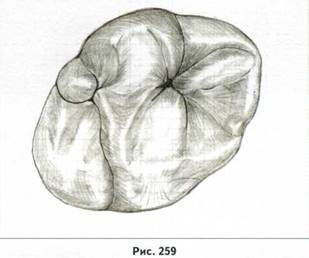 Рис. 264-266 показывают форму коронки верхнего первого правого моляра с небной поверхности.