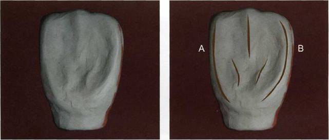 Рис. 661. А — медиальная сторона; В — дистальная сторона ХУДОЖЕСТВЕННОЕ МОДЕЛИРОВАНИЕ И РЕСТАВРАЦИЯ ЗУБОВ