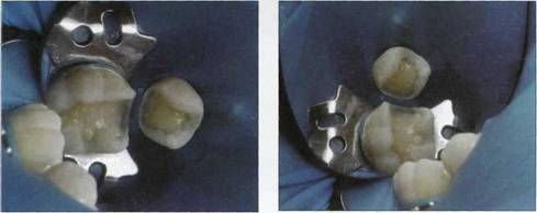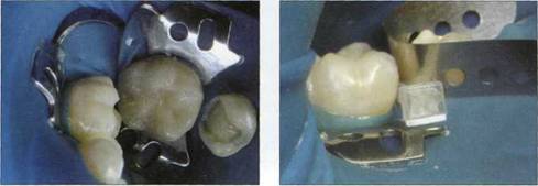 Рис. 716. Восстановление коронки 46 зуба материалами семейства "Filtek", фирмы "3M-ESPE" Рис. 717. Фиксация матричной системы