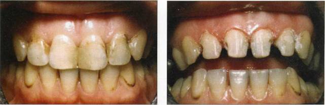Рис. 742. Отпрепарированы 12, 11, 21, 22 зубы