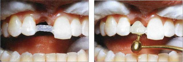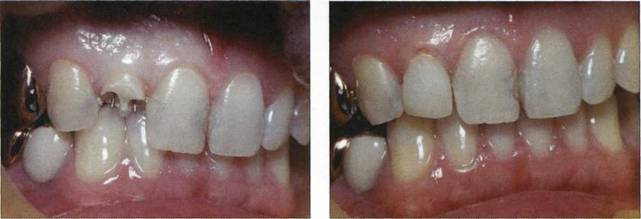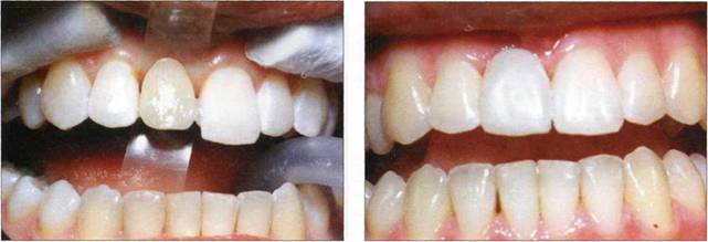 Рис. 805. Этап препарирования 12 зуба Рис. 806. Этап фотополимеризации