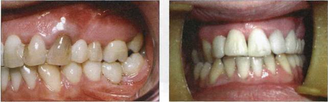 Рис. 899. Конечный результат восстановления зубных рядов верхней и нижней челюсти слева Рис. 900. Конечный результат КЛИНИЧЕСКОЕ ПРИМЕНЕНИЕ ОСНОВ ХУДОЖЕСТВЕННОГО МОДЕЛИРОВАНИЯ