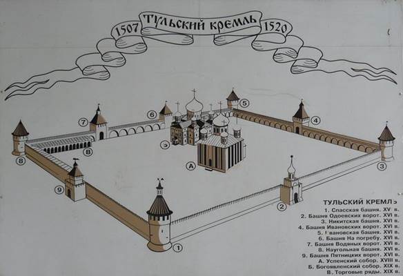 - Ивановская башня — в XVI века называвшаяся «Тайницкой» - под ней начинался подземный ход к реке, длиной около 70 метров, обложенный дубовым срубом — тайник, он обеспечивал водой осажденных врагами туляков, но в XVII веке сруб сгнил и обвалился;