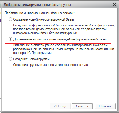 Настройка 1С. Запускаем значок 1С Нам необходимо добавить как минимум 2 базы: тестовая база по сети, тестовая база через интернет.А лучше сразу 4. Тестовая база по сети.