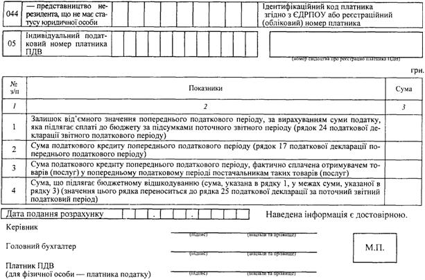 | Залишок від'ємного значення, який після бюджетного відшкодування включається до складу податкового кредиту наступного податкового періоду (рядок 24 — рядок 25)