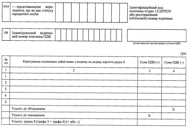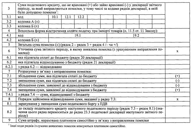 | Коригування податкового кредиту за попередні звітні періоди (у разі заповнення цього рядка обов'язковим є подання додатка 1 до декларації):