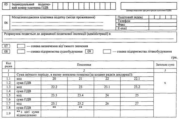 | Сума штрафу, нарахована платником самостійно у зв'язку з виправленням помилки