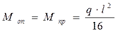 При одинаковых пролётах по всей длине прогона изгибающий момент и опорная реакция первой промежуточной опоры будут больше остальных, что потребует усиления крайнего пролёта прогона и опорной конструкции (ригеля). Для выравнивания изгибающих моментов и опорных реакций в крайних пролётах надо уменьшить величину этих пролётов на 15% и принимать Расчёт консольно-балочных прогонов на прочность производят по формуле (3), в которой максимальный изгибающий момент принимают по формулам (5) или (6). Прогибы консольно-балочных прогонов определяют по формула (7) и (8):