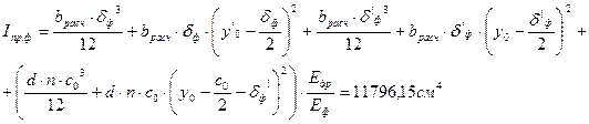 где dф=0,8см – толщина верхней обшивки d!ф=0,6см - толщина нижней обшивки Еф=90000кгс/см2 - модуль упругости фанеры Едр=100000 кгс/см2 - модуль упругости древесины d=4см – толщина ребра панели с0=14,4см – высота ребра панели с учётом острожки n=3 – количество рёбер