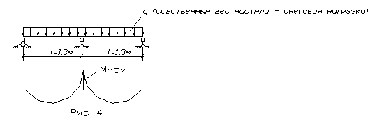 Согласно п. 6.14 [1] настил рабочий расчитывается на следующие сочетания нагрузок: а) постоянная + временная от снега (расчет на прочность и прогиб). б) постоянная + временная монтажная (расчет только на прочность). Для варианта а (рис 4) расчетное значение нормальной составляющей для полосы 1м условно вырезанной вдоль ската.
