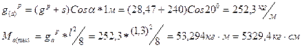 Так как Ма > Мв – ведем расчет для Ммах =5329.4 кг·см (из варианта а). Для проверки прогиба: величина нормативной нагрузки