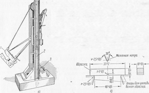 Рис.1 маятниковый копер и образец для испытаний