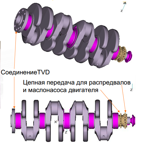 Коленчатый вал. Изготовлен из кованной стали повторным формованием. Коленвал имеет 5 коренных подшипников (рис. 44).
