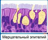 Рис. 13. Мерцательный эпителий состоит из клеток с многочисленными ресничками, выстилает дыхательные пути.