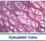 Виды соединительной ткани Хрящевая ткань образована живыми круглыми или овальными клетками, лежащими в капсулах, межклеточное вещество плотное, упругое, прозрачное. Из хрящевой ткани образованы межпозвоночные диски, хрящи гортани и трахеи, ушные раковины, поверхность суставов. Эта ткань сглаживает трущиеся поверхности, защищает от деформации дыхательные пути, ушные раковины.